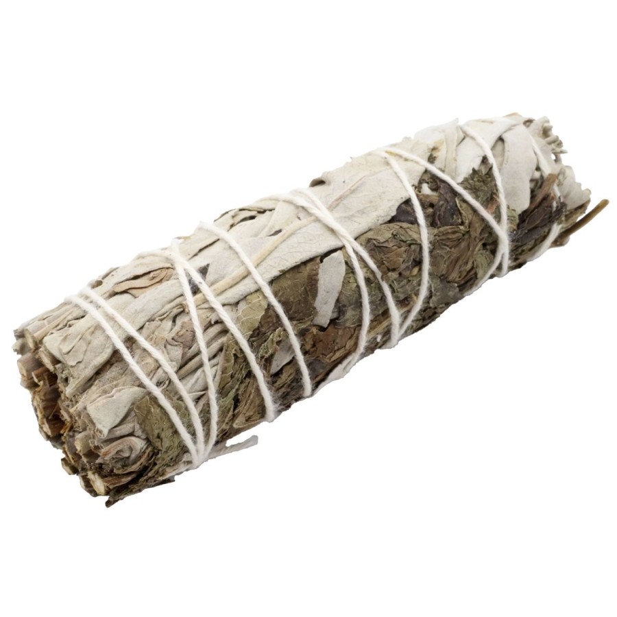 Ce fagot combine la sauge blanche, connue pour ses puissantes vertus purifiantes, et la menthe, plante vivifiante aux propriétés stimulantes.