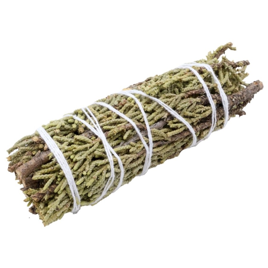 Ce fagot est composé de branches et de feuilles de genévrier soigneusement séchées et nouées à la main. Sa fumée boisée et légèrement épicée agit comme un puissant nettoyant énergétique, éliminant les influences négatives et rétablissant un équilibre harmonieux.